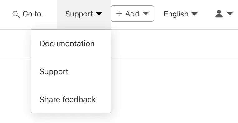 1. In the upper right corner of the Cloudflare dashboard, select Support > Support or visit https://dash.cloudflare.com/?to=/:account/support.